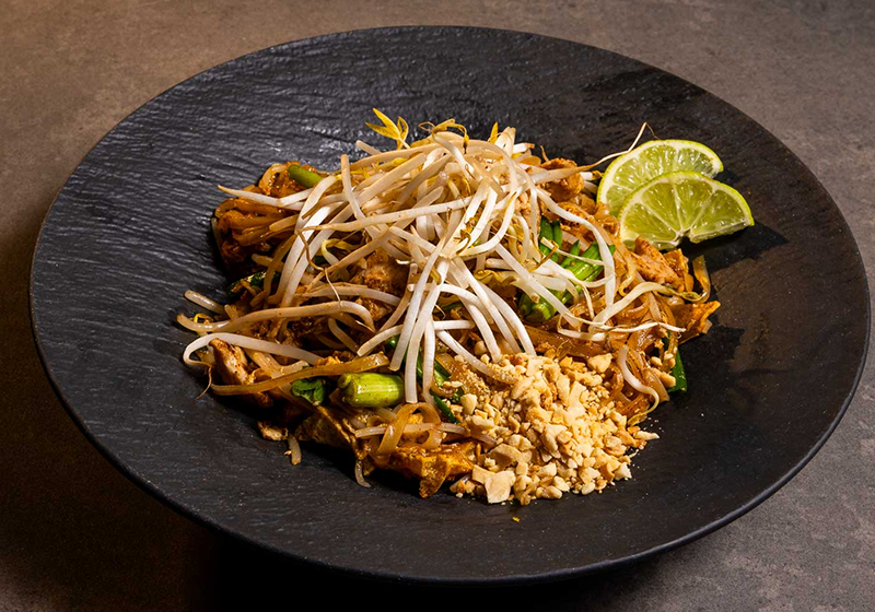 Pad Thai - Stir-fried thin rice noodle, egg, bean sprout, scallion, peanut and Choice of meat